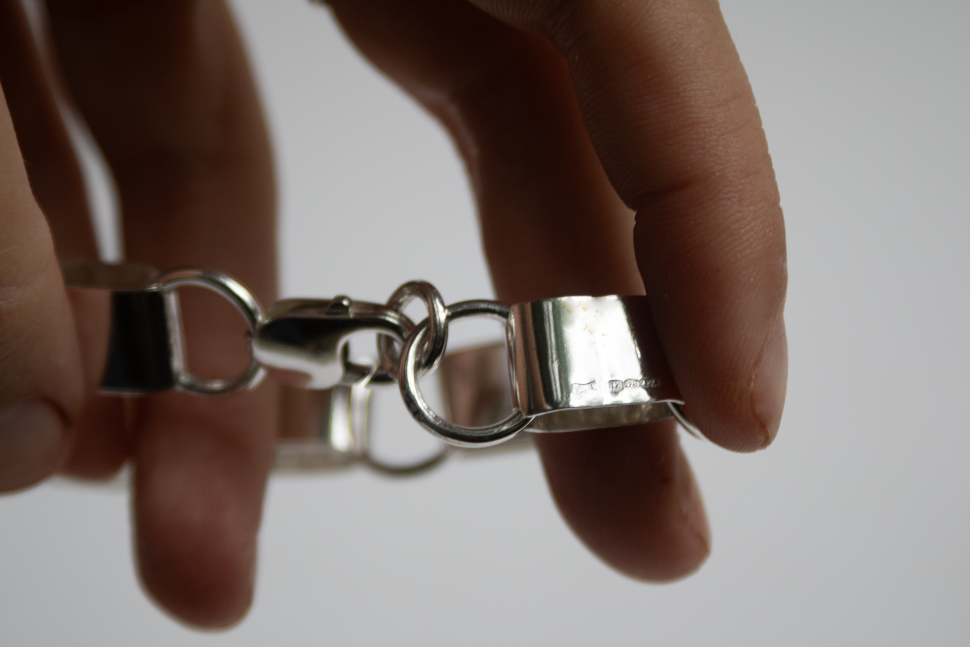 This handcrafted sterling silver bracelet is formed from individually crafted and assembled links. It sits comfortably on the wrist while making a statement that’s effortlessly timeless. This is a slow-made classic designed to last for decades, not just seasons.